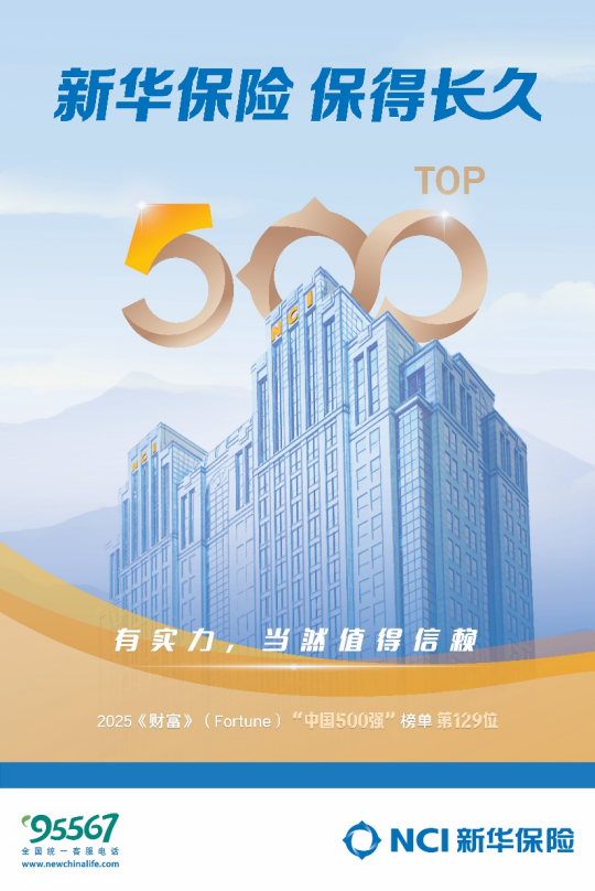 7月22日,2025年《財富》中國500強(qiáng)排行榜揭曉,新華保險連續(xù)14年入榜《財富》中國500強(qiáng),排名第129位。