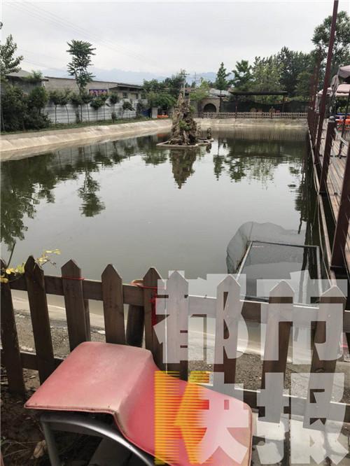 農家樂工作人員:“嗯。我在庫房的時候,娃還在那攆雞呢。我去庫房出來修傘,拿的螺絲,過來看的時候,我看見了,就趕緊去撈?!?/p>