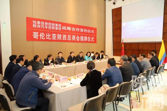 會上,怡豪集團和陜汽控股簽署了戰(zhàn)略合作協(xié)議,胡和平還為哥倫比亞陜西總商會揭了牌。