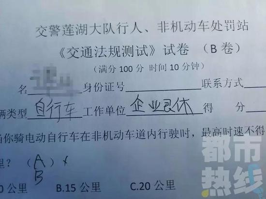 交警登記了小張的身份信息、沒收了他的車鑰匙,之后告訴小張,他還要進行最少2個小時的學習,只有在達到規定學習時間,寫完學習心得,并通過一份10道題的交通安全測試后,方能騎車離開。