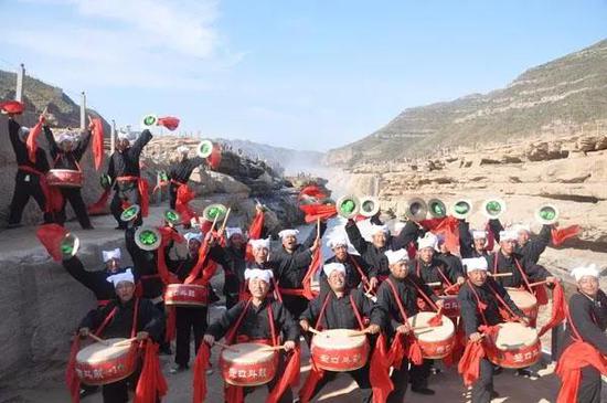 每年正月初一至十五,在延安的大街小巷,總會聽到隆隆的鼓聲,宜川也不例外。在長長的表演隊(duì)伍中,聞聲便可識鼓。歡快輕巧的是宜川胸鼓,震耳欲聾的,便定是壺口斗鼓了。壺口斗鼓源于氣勢磅礴的壺口瀑布旁,流傳于宜川縣黃河沿岸的壺口鎮(zhèn)一帶。