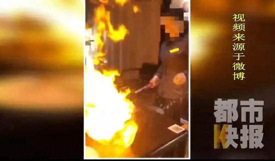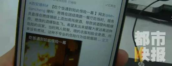 墨食餐廳工作人員:“操作人員操作不當,酒精離火源太近,燃起來了,氣壓過大,瓶子爆了。”