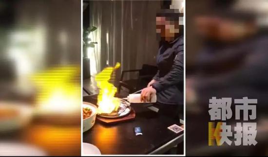 據工作人員介紹,他們加熱的這道菜正是該店推出的創新菜品“火灼泡椒牛蛙”。而當記者問到網上瘋傳的視頻時,餐廳的工作人員這樣說道。