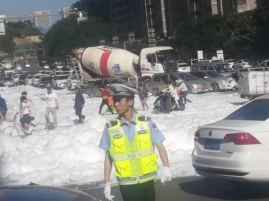 “主要是三個措施,第一,把群眾和車輛進行疏通;第二,在附近搜尋,看這個泡沫是哪來的; 第三,我們已經取樣送去檢測站進行分析?!?/p>