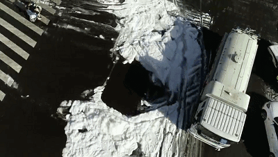 由于現場的工作人員進行緊張的處理,以及7輛灑水車不斷的進行路面噴灑,沒多久這些白色泡沫就得到了基本控制,交通也恢復正常。