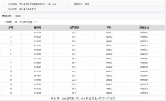百姓家園經濟適用房項目DK-1一期11#樓部分房源價格