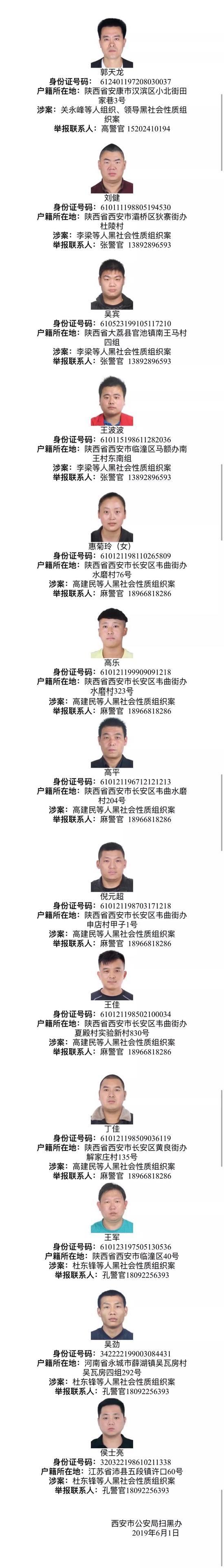 為進一步推進全市掃黑除惡專項斗爭,強力震懾黑惡勢力違法犯罪人員,盡快抓獲涉黑惡案件在逃人員,西安市公安局掃黑辦決定于即日起集中對下列涉黑社會性質組織犯罪嫌疑人進行公開懸賞緝捕。歡迎廣大人民群眾踴躍舉報,凡提供線索抓獲被通緝對象的,每抓獲1人視情節獎勵人民幣5000至10000元。
