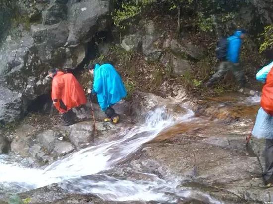(1)繼續行進時,因暴雨影響能見度,應更加注意辨別方向。雨濕路滑,必要時使用安全繩,確保進行安全。