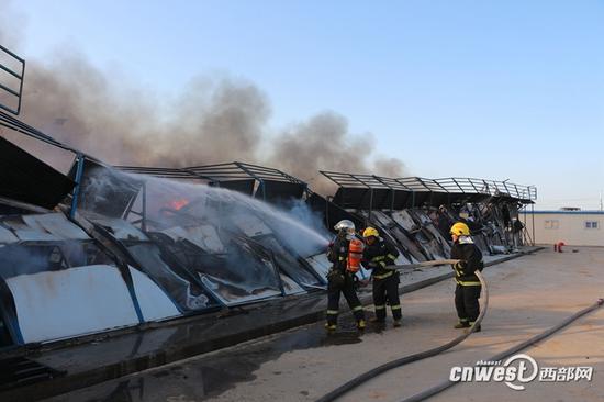 西部網(wǎng)訊(陜西廣播電視臺新聞中心 記者 王蓉)昨天早上(4月8日)7點左右,在神木市錦界鎮(zhèn)一個化工廠里57間連排的彩鋼房突發(fā)大火,火焰直沖近10米高。
