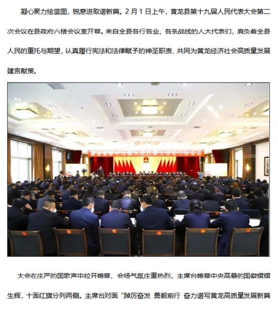 黃龍縣第十九屆人民代表大會(huì)第二次會(huì)議開幕